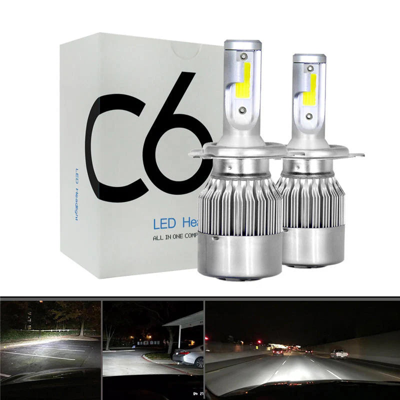 Experience powerful and clear road visibility with the C6 H4 LED Headlight Bulb from Shark Auto. Featuring 72W high output and 6500K pure white light, this bulb delivers exceptional brightness for both high and low beam driving.